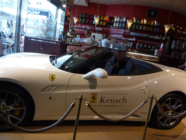 維也納有名的小紅帽咖啡正名應是麥諾咖啡,在行人徒步區內有間咖啡專賣店,愛喝咖啡的小貞二人組是不會錯過滴,但有沒有太誇張呀!一部法拉利名跑車就擺在吧枱前展示呢,真是大手筆~~回程前一晚就住在機場對面,晃去逛逛時看見連行李都有專屬的拉車呢,挺可愛的說~~這老兄夠酷吧!古董機車載著愛犬特意慢速地逛大街,在行人徒步區裡遊行呢~~歐洲的行人徒步區或廣場常會見到三輪人力車,是載著觀光客流灠用的,可不會載您走太遠哩~~歐洲以浪漫著稱,坐著馬車/看藝術建築/喝咖啡/看情侶散步(相片中右前有穿情人裝的情侶入鏡),生活如此悠閒,而廣場上有小紅帽咖啡大型氣球咖啡機攤位,它的正後方才是專賣店(最上圖)~~水晶之泉小貞二人 發表在 痞客邦 留言(0) 人氣(527)