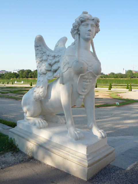 後花園的守護神是女人面神獸,傳說摸守護神的某部位可以求得好運,您有沒有發現哪裡被摸得變色了呢?(害羞)~~ 貝維雷德宮分上下二宮殿,上宮殿前面有一大水池及花圃,水池映著陽光把宮殿襯得更亮眼哩~~ 宮殿入口有馬車專用斜坡道及雄壯威武的守衛雕像~~ 上下宮殿中間隔的幾何圖形花園,守護神駐守在每個出入