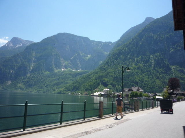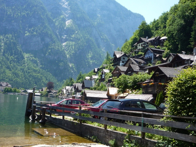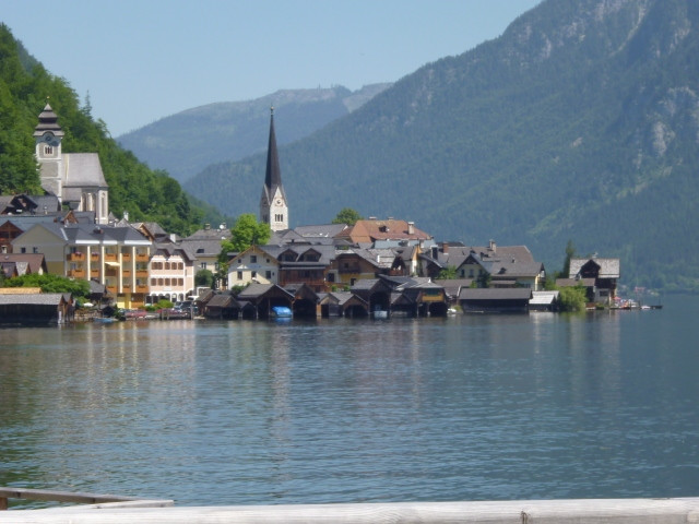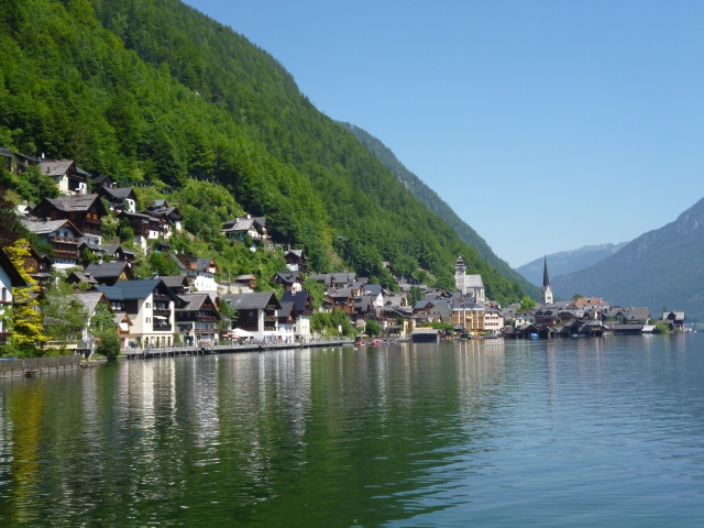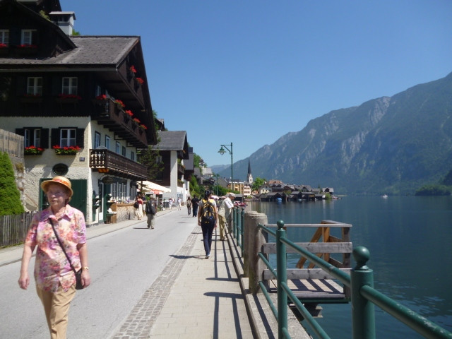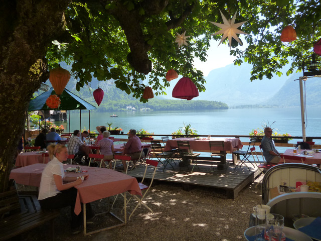 歐洲奧地利列世界文化遺產的哈爾斯塔特,悠閒渡假的人們坐在湖畔餐廳,看著碧綠湖水金光映波,風景如詩如畫,浪漫之情油然而生~~